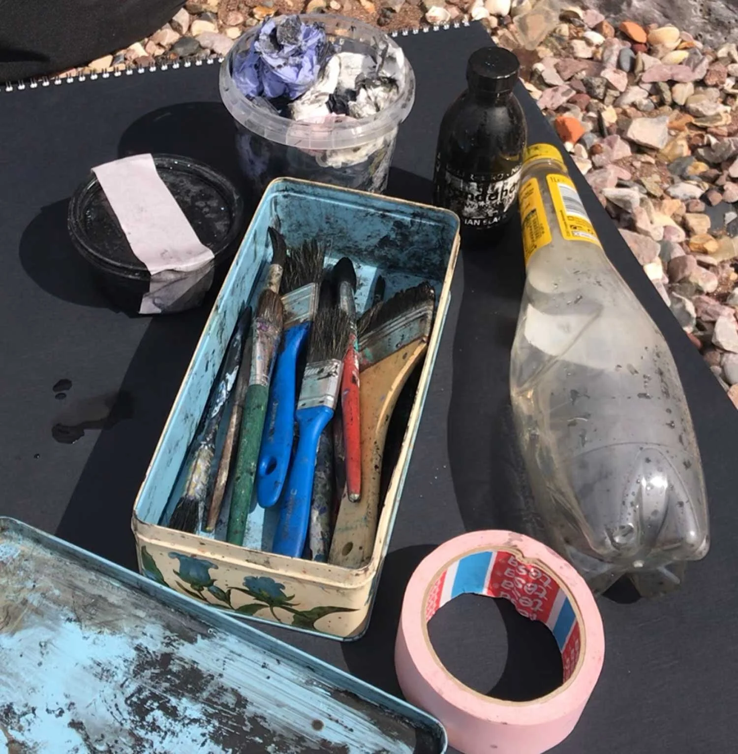 It takes time to find your materials of choice. From drawing to painting, the choice is so varied. In the end it’s the personality of the marks and behaviour of the material which will draw you to it. I discovered ink whilst on my MA in Illustration. Ink is the perfect medium for location work. It’s versatile nature means it can be delicate and bold; dark and light; opaque and translucent. Over time i’ve built up a solid ‘Location Drawing’ equipment list that is striped down to the bare basics for weight purposes. Other than the ink, water, rag and sketchbooks, a wide range of brushes is the most important edition.