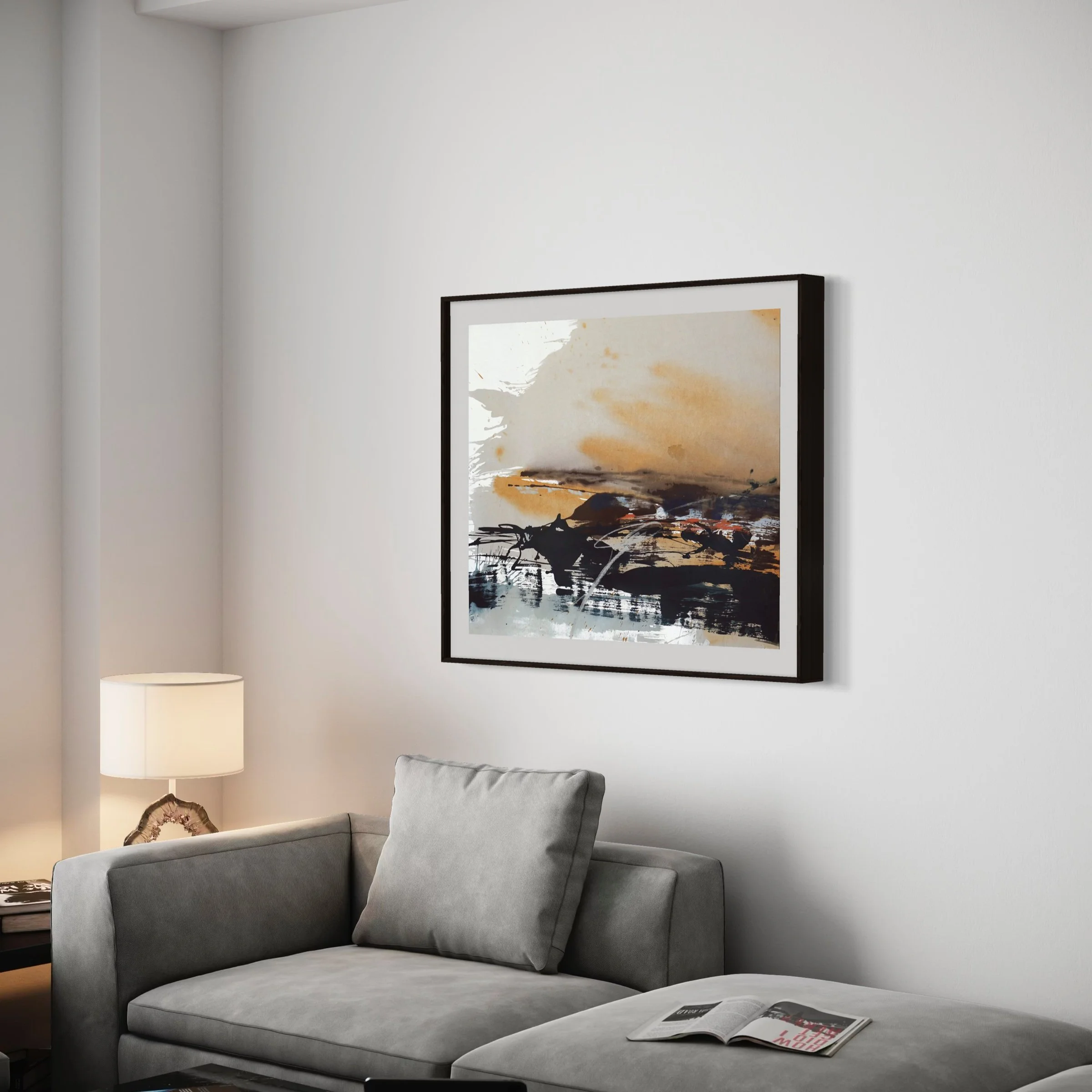 This painting is created using mixed media on paper. Layers of delicate inks, matt acrylic and soft pastel are combined to suggest the wild landscape of North wales. This is a contemporary semi-abstract and will be a beautiful statement piece for your interior.