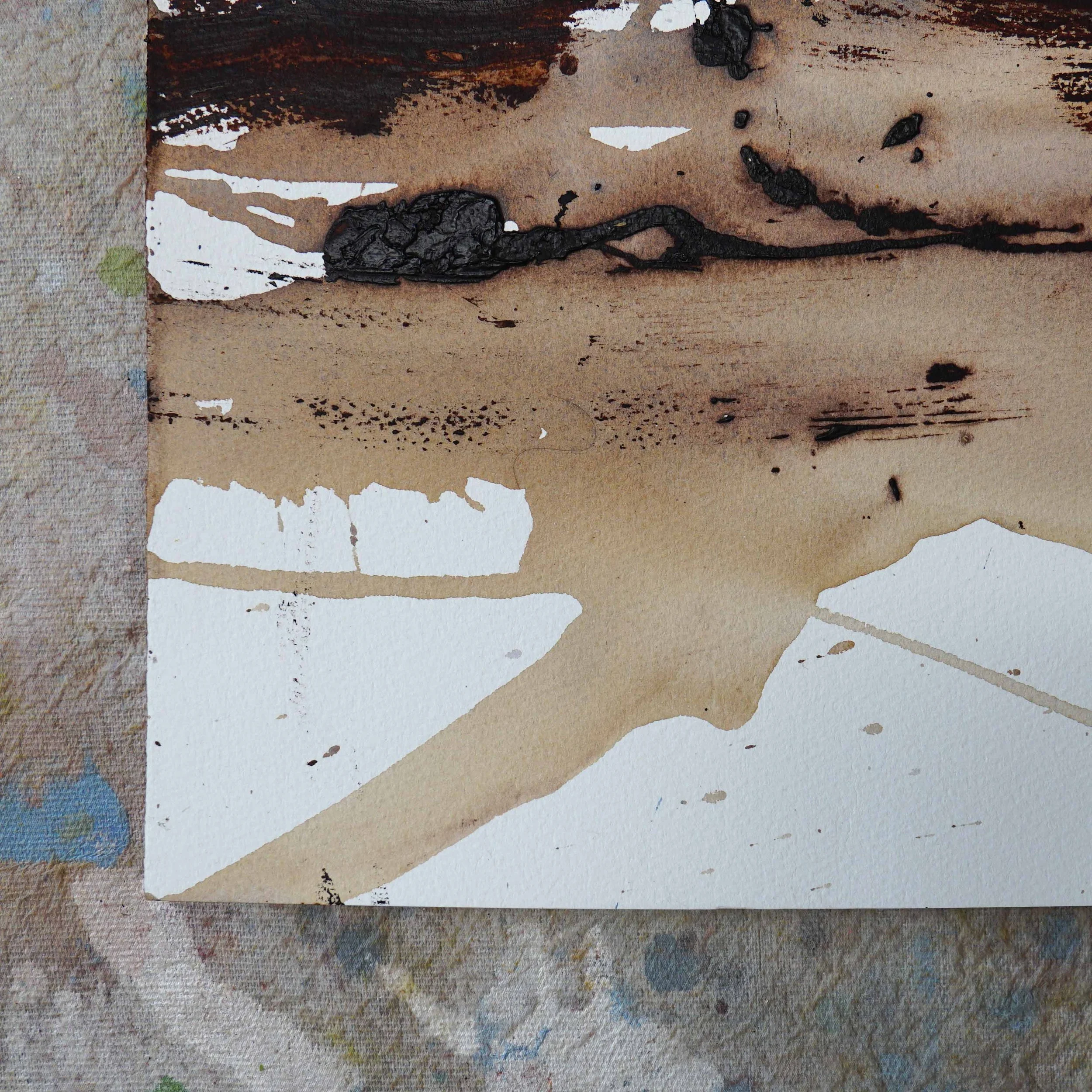 This painting is created using mixed media on paper. Layers of delicate inks, matt acrylic and soft pastel are combined to suggest the wild landscape of this location.